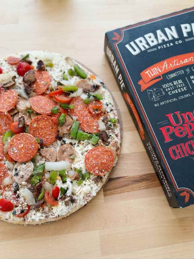 On a recent shopping trip, a newcomer caught my eye: Urban Pie’s Uncured Pepperoni & Sliced Chicken Sausage. It sat there amongst the sea of red-boxed giants, looking decidedly more sophisticated. What actually drew me in wasn’t just the promise of protein; it was the sheer audacity of the packaging. One half featured a gorgeous, stylized shot of the pizza, glistening cherry tomatoes, vibrant green peppers, and cheese that looked like it was defying gravity. On the other you’re met with a wall of text so dense it could be a doctoral thesis on dough hydration. The “Urban” branding felt targeted, sure, but as a former chef, I’m a sucker for a brand that leans into the details, even if it makes my head spin a little.