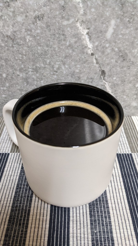 I poured the dark liquid into my favorite mug and inhaled deeply. Wonderful. The aroma that greeted my nostrils was very fruity, but not overpowering. With the first sip was smooth, rich flavor. There was very little bitter after taste that can accompany some roasts. Overall, the coffee was a welcome accompaniment to my breakfast.